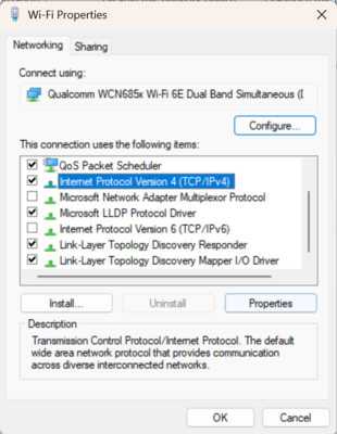 - Select Internet Protocol Version 4 (TCP/IPv4), and select Properties