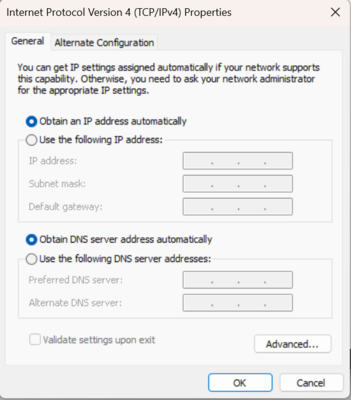- Confirm that the IP address configuration is set to be obtained automatically.